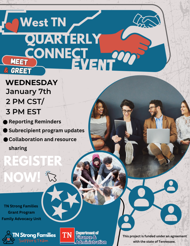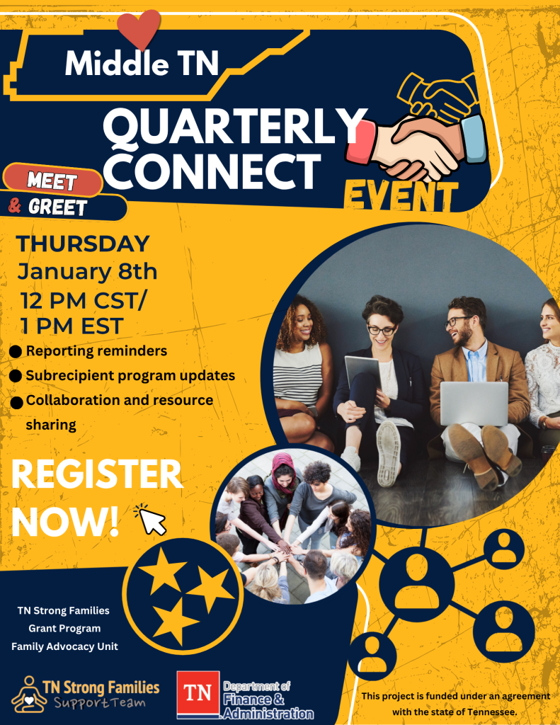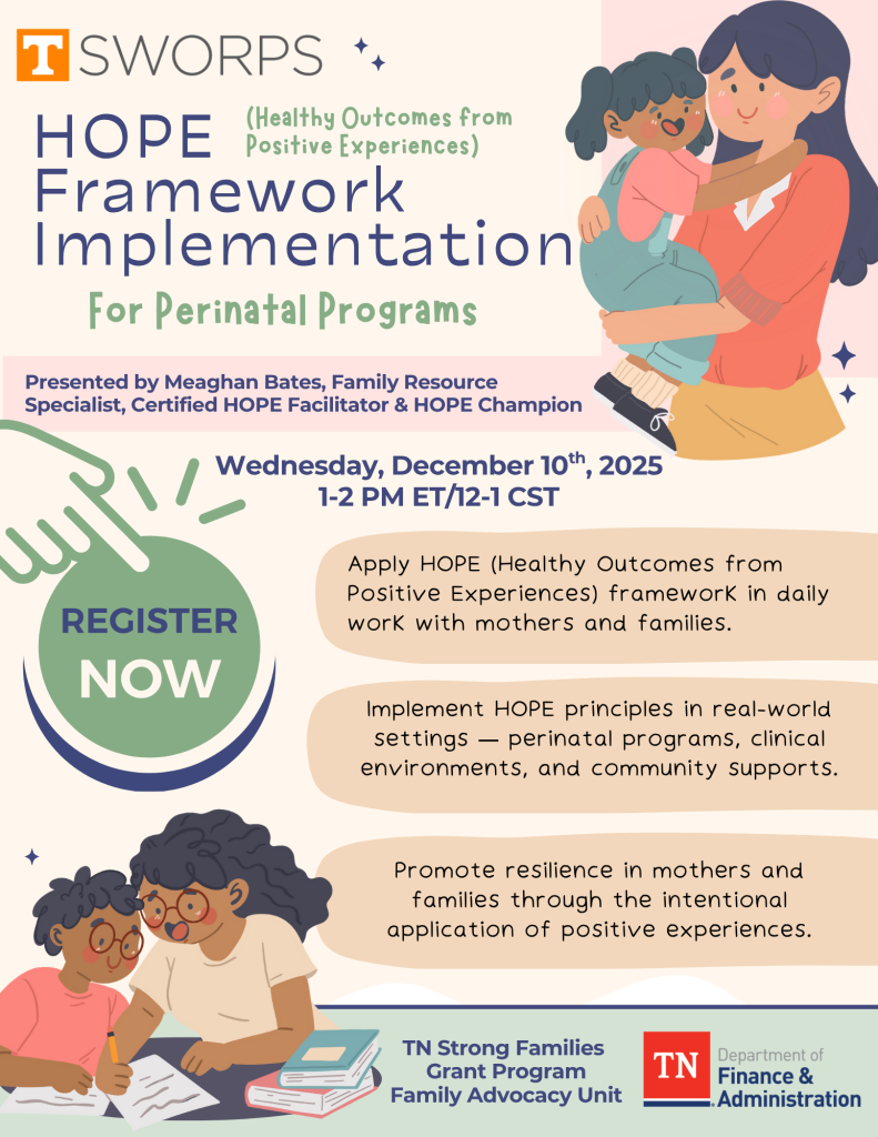 The Tennessee Strong Families Support Team is committed to providing applicants and recipients of the Strong Families Grant Program with the knowledge, support, resources, and technical assistance needed in implementing their approved projects and ensuring their success in making a positive impact for Tennessee mothers, children, and families.